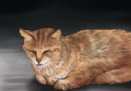 Notice if your cat starts to get more lethargic. "Lazy cat" is a common idiom for a reason. Cats sleep a large portion of their day, up to 16 hours or more. However, you know how much your cat sleeps and plays. If you begin to notice a decrease in energy, that could also be a sign of this disease. In more severe stages, the cat may not want to move much at all, and it may sit hunched-over at times.