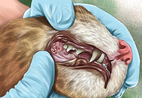 Watch for problems in the mouth. Several symptoms can creep up in the mouth. For example, you may notice that your cat develops ulcers on the cheeks and tongue. Another symptom associated with the mouth is especially bad breath. Of course, your cat's breath probably always smells fairly bad (fish breath!), but if it develops a particularly foul odor, that could also be a sign.
