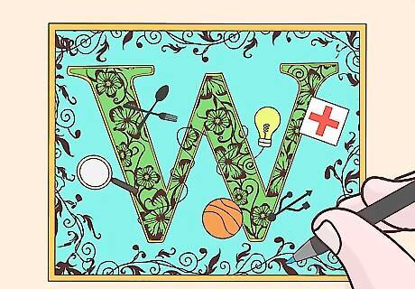 Use a name or place. Decorate the first letter of your first or last name. Or, choose the name of a place that you care about, like your hometown or your favorite vacation spot. Start thinking about how you might decorate an illuminated letter for your own name with things that interest you and colors you like. The first letter of a place name could feature landmarks or other images from that place. You can also illuminate the first letter of a friend or family member's name, and give your design to them as a nice gift.