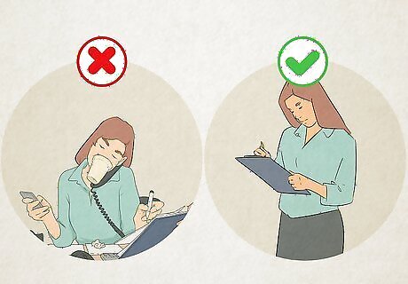 Practice mindfulness. The practice of focusing only on the task at hand and focusing on that task with all of your senses can help improve your concentration. Improving your concentration can help you be more productive and improve your job performance. Instead of multitasking, do one thing at a time. Focus all your attention on that one thing. For example, instead of checking your email while you complete your inventory sheet, focus only on the inventory. If you find your mind wandering or that you are daydreaming, gently bring your thoughts back to the task at hand. You might say to yourself, “I started thinking about the game. Let me focus on the inventory.”