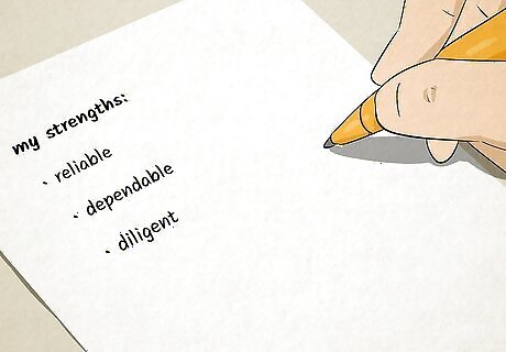 Compile a list of your strengths. Although you may be focused on your areas of improvement, taking a look at your strengths can help you improve your job performance. When you know what your strengths are, you know what internal resources you have to support your improvements. Make a list of strengths that you, your co-workers, or your supervisor mentioned in your evaluations. Highlight those strengths that were mentioned by more than one person or more than once in general. For example, you might write ‘reliable’ and ‘dependable’ and also write and highlight ‘diligent’ because you and your supervisor mentioned it.
