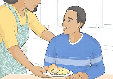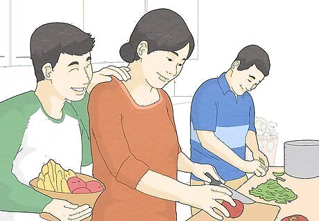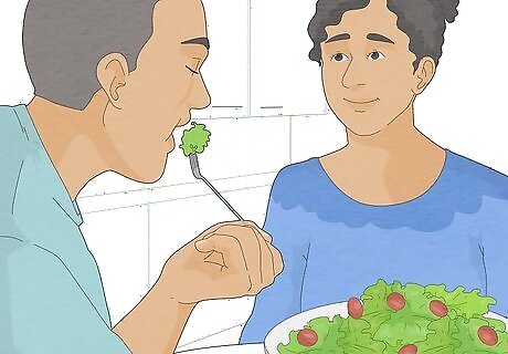 Teach your teen how to cook. Another way to get your teen involved in their own health and nutrition is by teaching them how to cook. Cooking and prepping meals is an essential skill — they'll need to learn eventually — so start teaching them now. Have your teen hang out with you in the kitchen as you prep dinner. It's a great time to have one-on-one talking sessions and allow your teen to assist you in prepping the meals. Let your teen prepare some of the meal as well. Maybe they're in charge of making the salad or steaming the broccoli. Also, if there is a favorite cuisine or favorite dish of your teen, offer to make that together. Have them pack their own lunches as well. After dinner is cleaned up, show them how convenient it is to pack their lunch the night before so it's ready for them to grab on their way out the door.