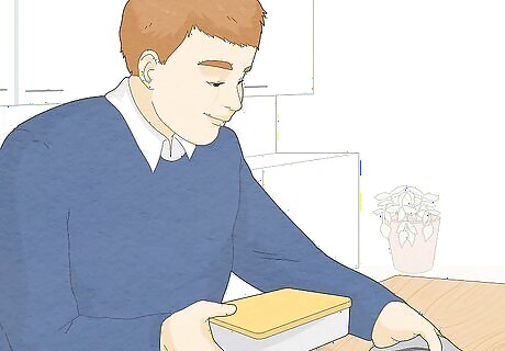 Purchase all family members a lunchbox and water bottle. Get your family on board with healthy eating by encouraging everyone to pack their lunch and drink more water. Purchase lunch boxes and water bottles for everyone to bring to work and school. Encouraging your teen to bring their lunch instead of buying a school lunch can help them stay away from some of the more processed foods or less nutritious foods that are typically offered at school lunches. Allow family members to pick out a lunch box that they like and will feel happy about bringing with them to school. The same goes for water. Let your child pick out a fun water bottle they can tote with them to class to help encourage them to drink more hydrating fluids like water.