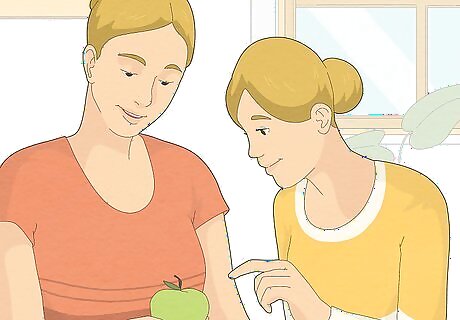 Be a good role model. Although teens typically are "king" of doing whatever they want and making their own decisions, it's still important to show them what "healthy eating" should be as an adult. Your teen may no longer mimic you as they did when they were younger, but they're still aware of what you do and don't do — including when it comes to mealtimes and food choices. Show your teen how you should eat instead of only telling them. Show them how to shop for healthy foods at the grocery store, show them that you read food labels and compare items for the most nutritious choice and show them how you plan out a well-balanced meal. Also show them that you eat a lot of lean protein, fruits, and vegetables. And instead of picking more processed snack foods, show them that you typically choose a healthier choice like whole grain crackers and hummus.