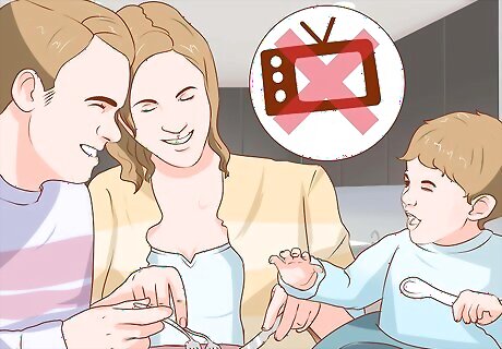 Eliminate distractions during mealtimes. When it is time for your toddler to eat, that should be the only activity. You shouldn’t eat dinner while watching television, playing games, or doing anything else that will distract your child from eating. Your child should focus on eating and the food. You should also not be distracted. This means everyone at the table should put away their phone, tablet, or computer during meal times. Make mealtimes about eating.