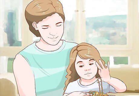 Make mealtime a positive experience. Kids can develop eating anxiety and they can be discouraged or act resistant to eating if meals are a bad experience for them. You should make mealtimes a good experience for the whole family. Refrain from yelling at your child or other family members during meals. This might lead to negative responses. Encourage you child to recognize if they are not hungry and put the food away and try later, but with the same food. They can still sit at the table for family mealtime even if they are not eating.