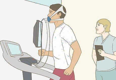 Get your lactate threshold tested at an exercise lab. In a traditional lactate threshold test, a technician will draw small amounts of your blood at various points during an incremental exercise test. The exercise test is typically carried out on a treadmill or stationary bike, with the intensity of the exercise increasing after every 3-minute interval. Your blood will be taken at the end of each interval. The average person will hit their lactate threshold once they reach about 50-60% of their maximal oxygen uptake (VO2 max). However, trained athletes tend to have a higher threshold (e.g., the lactate threshold occurs at around 85-95% VO2 max for endurance athletes). Lactate threshold testing in a lab can be expensive, costing anywhere from $75-$200 USD. To find a lab in your area, search for something like “lactate threshold testing near me” or “lactate threshold lab Chicago.”