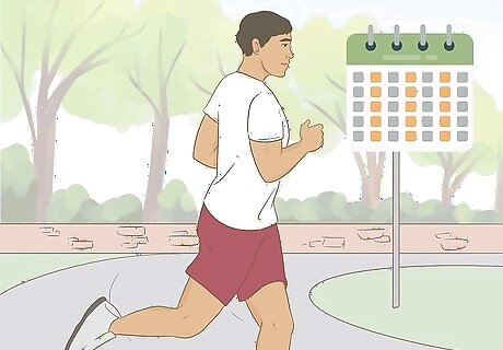 Set a weekly training goal. The best way to start increasing your lactate threshold is to gradually increase your weekly training time. Work with your personal trainer or coach to set a reasonable target goal and discuss the best way to reach that goal. For example, if you are currently doing 100 minutes of cardiovascular exercise per week, you might set a goal of working up to 200 minutes per week. If you don’t have a trainer or coach, ask your primary healthcare provider for advice. They may be able to refer you to someone who can help you meet your fitness goals.