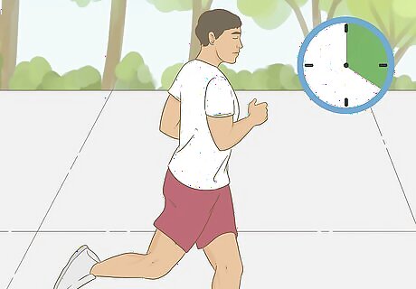 Incorporate interval training into your weekly routine. To get the most out of interval training, plan to do 1 session every week. However, to avoid injury and overwork, interval training should account for no more than 10% of your weekly cardiovascular activity. For example, if you are doing 200 minutes of cardio each week, do no more than 20 minutes of interval training total per week. If you are also doing steady state exercises, like tempo runs, avoid scheduling this type of exercise close to your weekly interval training. Give yourself 2 days to recover between these types of training.