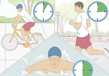 Vary your time per session. You don’t always have to exercise for the same amount of time during each training session. Work with your trainer to figure out what works best for you. However, aim for a minimum time of 10 minutes per session. For example, you might do a low-intensity 45-minute treadmill session one day, and 2 20-minute sessions the next.