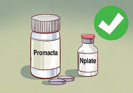 Talk to your doctor about medications that stimulate platelet formation. While medications are not often used to treat chemotherapy related low platelet counts, studies show that certain medicines can help. If your platelet count doesn’t improve significantly after a transfusion, your doctor may recommend using a type of medication called a thrombopoietin receptor agonist. The 2 most common thrombopoietin receptor agonists are Promacta (eltrombopag) and Nplate (romiplostim). These drugs are not yet approved by the FDA for treating low platelet counts in chemotherapy patients, but your doctor can still prescribe them for that purpose.