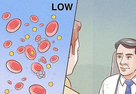 See your doctor if you have symptoms of low platelets. If you suspect that your chemotherapy treatments are reducing your platelet count, make an appointment with your doctor right away. They can do blood tests to check your levels of platelets and other blood cells. Watch out for low platelet count symptoms, such as: Easy bruising Tiny red spots under your skin Frequent nosebleeds or bleeding from your gums Unusually long-lasting bleeding from small cuts Blood in your urine or stools, or stools that look black or tarry Vomit containing blood or a dark substance that looks like coffee grounds Unusually long or heavy menstrual bleeding Headaches, blurred vision, confusion, or weakness