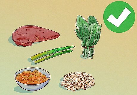 Eat foods rich in folate. Dietary changes alone aren’t enough to treat a significantly low platelet count. However, eating a balanced diet may help your body produce healthy platelets as you recover after chemotherapy. Eating a diet rich in folate can help support your healing process. Good sources of folate include: Dark, leafy green vegetables, such as spinach, mustard greens, asparagus, and brussels sprouts Black-eyed peas Beef liver Rice Fortified breakfast cereals