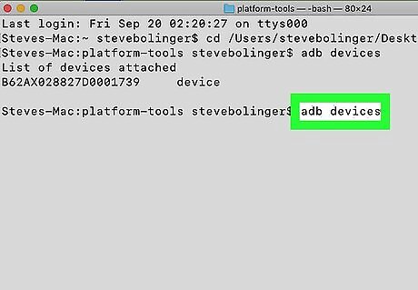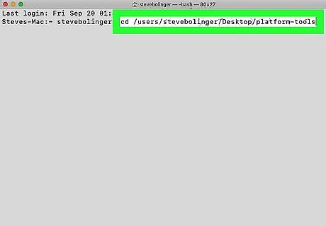 Use the "cd" command to go to the extracted folder. For example, you can type cd /users/Karen/Desktop/platform-tools if the extracted folder is on your desktop.
