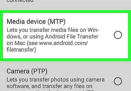 Connect the Android to the computer via USB. You'll see a popup on your Android phone or tablet that a USB connection has been detected. You'll have options to change what your Android does with the USB connection.