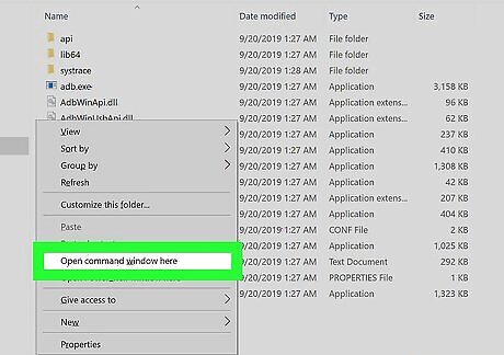 Open a command prompt in the file. You can do this by pressing and holding the ⇧ Shift key while right-clicking in the file, then selecting Open command prompt here or Open PowerShell here.