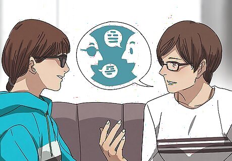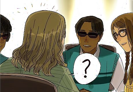 Identify yourself and others who may be with you when meeting someone who is blind. Ideally, instead of saying "This is John," (or whoever) have those who are with you introduce themselves, one at a time, to them. When conversing in a group, remember to identify the person to whom you are speaking to if there may be doubt as to who the comment is directed to, i.e. using their name — otherwise, they will become confused as to whether or not you are speaking to them. However, overusing names during a conversation can be annoying to everyone involved, not only the person who is blind. Generally, do not modify the way you speak. Most people who are blind can tell who you are talking to by the direction you are facing or the acoustics of the room. In most cases, if there is confusion, the person who is blind will ask for clarification. Always inform the person who is blind verbally that you are leaving before your leaving from the place so that they will not be left talking to the air. Never talk only to a third party who might be with them, such as their spouse, driver, reader, teacher, tutor etc. Look at them and speak as you would to anyone else. Don't talk to guide dogs, this is insulting and the dog never answers. Do not shout; just speak in a normal tone of voice as usual.