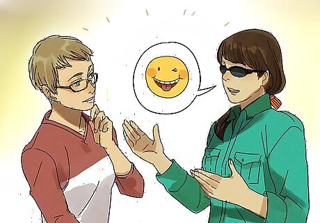 Relax. Don't be embarrassed if you use common expressions such as “See you later” or “Did you watch the movie this weekend?”. Just as a person who uses a wheelchair still goes for a walk, a blind person will still be pleased — or not — to see you. In other words, blind people use the same expressions as those who are sighted.