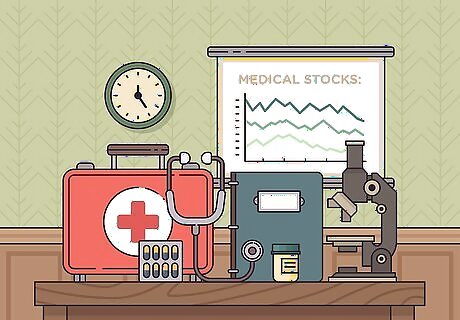 Diversify across multiple sectors. While it's smart to keep to core sector stocks, you still want to ensure that your portfolio remains balanced during the recession. In addition to staples and basic household goods, include stocks in healthcare and utilities. Like household goods, regardless of the market, people will still get sick and people will still turn the lights on — so these sectors will remain in steady demand. For example, if 20% of your portfolio is made up of stock holdings, you might invest a third of that in utility stocks, a third in healthcare, and a third in consumer staples.