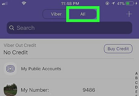 Tap a contact's name. This will open their contact information on a new page. If you see a Viber icon next to a contact's name, this means they're already on Viber.