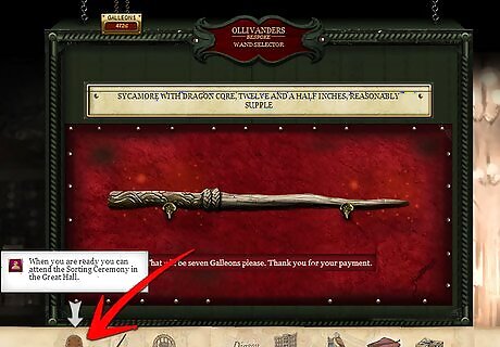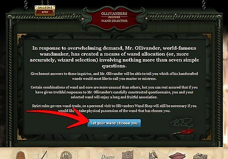 Answer the questions honestly, and get your wand. An arrow will show you to an Ollivander's icon once you buy a pet, so it should not be too difficult to find.