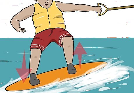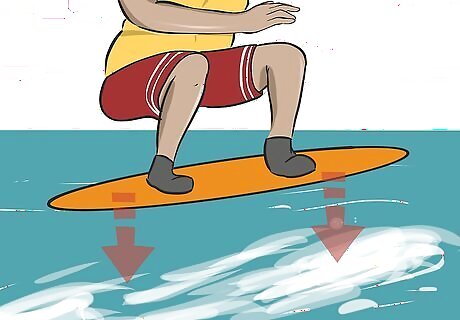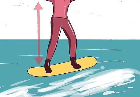 Bend your knees when you’re ready to jump. Bend slightly, but don’t lose your balance. Keep your head and chest up with your back straight as much as possible. If you lean forward, you might end up getting the wrong kind of air, face-planting into the water instead of leaping out of it. Leaning backward also throws off your balance, so lean only when you need to in order to stabilize the board. Maintain a strong base with your legs and monitor your balance on the board at all times.