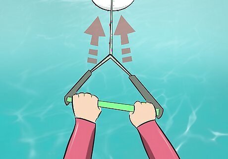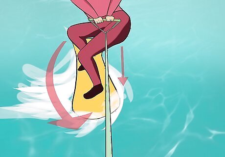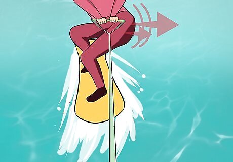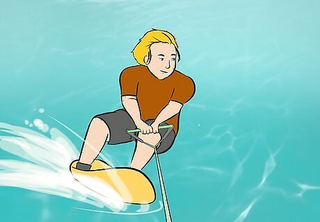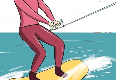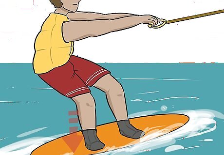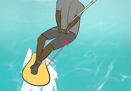 Change direction with your lower body to move back toward the boat. Wait until you feel yourself being pulled back toward the wake. As soon as you feel it, steer the board back with your lower body. Keep your knees bent, leaning back slightly on your heels to put your weight on the back edge of the board. Hold yourself steady as your board cuts back. Use your body weight to maintain your balance as you lean toward the toe and heel edges. These edges steer the board in opposite directions, so lean toward the heel edge to turn the board back to the boat at a faster rate.