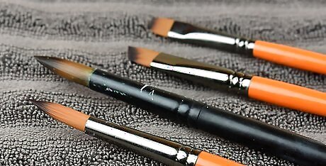 Wash and reshape your brushes after using them. Caring for your paint brushes is super important so that they stay shaped and keep their bristles intact. Once you’re finished using them, rinse them with water and a special soap for paint brushes to remove the excess paint from the bristles. Use your fingers to shape the bristles, creating a straight point so the brush will dry correctly. If you don’t have paint brush soap, a gentle dish soap will work as well. For example, if you’re using a brush with a pointed tip, wash the bristles and reshape them into a point while it’s still wet so it will dry in that shape.