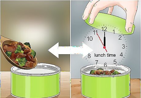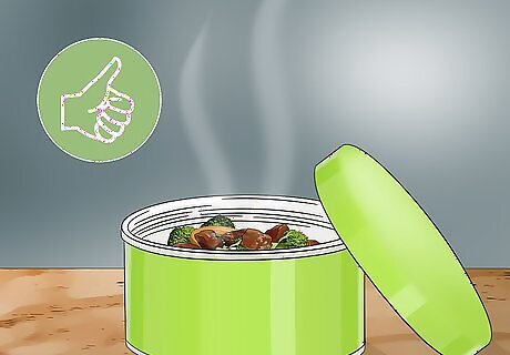 Place hot food into the thermos. Heat up the food in the microwave or on the stovetop so that it reaches a boiling point of 212 degrees. This will help to ensure that it is warm enough to eat at lunch time. Remember that the food will be consumed hours later, not right now. It is okay to make it too hot to eat right away.