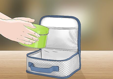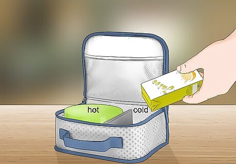Use a divider to separate the warm and cold items. If you have a divider for your insulated lunch bag, then you can use the divider to separate the warm and cold items. Place the divider between the warm and cold items and then seal the bag. If you don't have a divider, then you could use a piece of cardboard cut to fit in the bag.