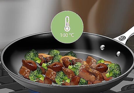 Heat your food to 212 °F (100 °C). Remember that you should heat food up to the boiling point of 212 °F (100 °C). You can also just heat up some water to do this test. Heat the food or water in the microwave or in a pan on the stovetop until the liquid is boiling. If you have a food thermometer, then you can also measure the temperature to ensure that it is at the boiling point.