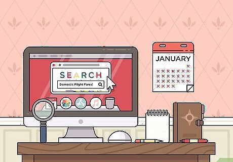 Begin your search 4-6 months before flying to get competitive prices. For a domestic flight, start looking for tickets 4-5 months before you want to fly. For international flights, begin the hunt 5-6 months ahead of time. More than 7 months out, airlines know they have plenty of time to find customers, so they set their prices fairly high. In the 1 month before a flight, they jack prices up again since business travelers often fly on short notice. Plan on booking your flight 1-3 months before your departure. This tends to be the best time to get a reasonable price. This will give you 1-3 months to look for a deal, which should be more than enough time. Keep in mind, if you’re flying to a highly-popular tourist destination or during a holiday, the prices may only dip a little bit.