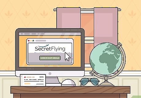 Use flight tracker apps and websites to set multiple price alerts. A price alert is a notification that you set through an app or website to let you know when a price for a planned flight appears to be bottoming out. Every price scanning app and website uses different algorithms and tracks different flights, so the best way to get a deal is to set the same price alert across as many platforms as possible. You can download a flight tracker app on your phone or do this through an internet browser.