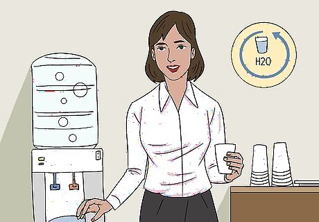 Drink water throughout the day to stay hydrated. Staying hydrated is important for everyone, but it's especially important if you have diabetes. Proper hydration helps you better manage your blood glucose levels. Proper hydration is also essential for efficient heart functioning. To figure out how much water you need to drink in a day, multiply your weight by 0.5. The result is the number of ounces of water you should drink each day. For example, if you weigh 200 pounds, you would need to drink 100 ounces of water (between 8 and 9 12-ounce glasses). To reach your goal, aim to drink one 12-ounce glass of water each hour you're awake. Keep in mind that this is only a baseline. After exercise, you'll need to drink more water. You'll also need more water if you drink dehydrating beverages, such as coffee or alcohol.