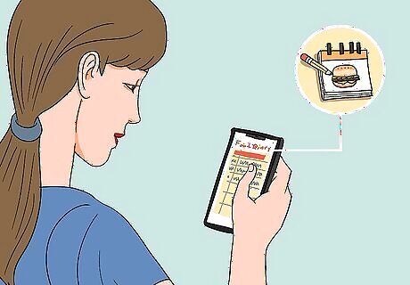 Keep a food diary to track how food affects your body. Along with your blood sugar logs, write down everything that you eat and drink throughout the day, including snacks. Include the time that you ate and the rough amounts of what you ate. There are food diary smartphone apps that you can use. Many of these apps are tied to weight-loss programs and may require a monthly subscription. However, some are free. You might ask your doctor or nutritionist (if you have one) if they have a particular app they'd recommend. Apps typically will automatically calculate calories and other nutrients in the food that you eat. Otherwise, you would have to look up the nutritional information and make these calculations on your own. As a diabetic, you'll need to stick to a low carb diet, such as 45 g of carbs per meal for women and 60 g of carbs per meal for men. Make sure you choose high fiber, complex carbs rather than simple, refined sugars.Tip: Check your blood sugar before you eat. Then check it again an hour to an hour and a half after you eat. This will tell you how your blood sugar reacts to the specific foods you ate.