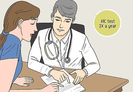 Get an A1C test at least twice a year. The A1C test measures your average blood glucose level over a 3-month period. Your doctor draws blood and sends it to a lab for analysis. Generally, you want your A1C level to be below 7%. However, your doctor may set a different goal for you based on your overall health and physical condition. Your doctor may want to check your A1C more than twice a year if you're having difficulty meeting your treatment goals. The A1C test helps your doctor monitor your management of your diabetes and adjust your goals or treatment as necessary.