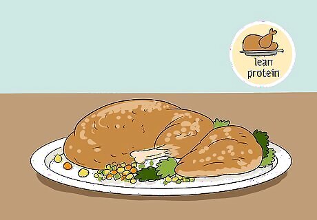 Choose lean protein sources. You may have heard that red meat isn't good for your heart, but this isn't strictly true. Lean cuts, such as sirloin and loin, in small portions (to keep your cholesterol below 300 mg) are fine to have once a week or so. The bulk of your meat, however, should be chicken or turkey. Make sure you remove the skin from any chicken or turkey before you eat it. Poultry is most heart-healthy when it is grilled or baked rather than fried.