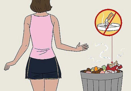 Quit smoking if you are a smoker. Smoking narrows your blood vessels, which causes your heart to pump harder and can lead to high blood pressure. If you're serious about improving your health, quitting smoking should be your top priority. If you quit, your blood glucose, blood pressure, and cholesterol levels will improve. Your doctor may even be able to take you off of some of the medications you were taking. Talk to your doctor about your desire to quit. They will help you set up a plan. Most smokers who are ready to quit spend a few weeks cutting down or rationing their smoking before quitting completely. Set a date when you plan to quit for good and tell as many friends and family members as you can. Let them know you need them to be there to support you. There are prescription drugs that can make it easier to quit smoking. Ask your doctor if any of them might be right for you.