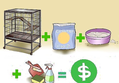 Account for the costs of a chinchilla. The cost of buying the chinchilla from a breeder, getting a cage, and initially investing in food, bathing dust, and toys can be anywhere from $250-$400. After you’ve made the initial investment, the general upkeep for paying for food, bathing dust, and cage cleaning supplies is around $22 a month, depending on where you live and what products you’re purchasing. Additional long-term investments could include trips to the vet and an optional cage upgrade.