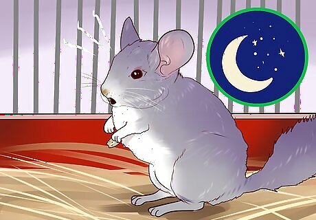 Prepare for a nocturnal pet. Chinchillas are usually awake from 8pm to 8am. Though these animals can be awake during the day, they most likely won’t want to play with you or interact actively. At night, however, they may make noises including chirping, squeaking, and grunting. Chinchillas can become aggressive or have health issues if their nocturnal time clock is disrupted or changed. Since your chinchilla will be awake at night, you'll want to place its cage where it won't disturb people who are sleeping.