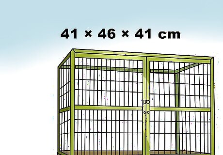 Furnish a cage that’s large enough for them. The minimum size chinchilla cage is 16 by 18 by 16 inches (41 × 46 × 41 cm), but the larger the cage, the happier your chinchilla will be. A chinchilla cage should have several levels, a dust bath, and a nesting space. Chinchillas are agile pets that like exercising, climbing, and burrowing. Chinchilla cages also need to be cleaned regularly. Chinchilla baths need to be prepared with specialty bathing dust in order to keep them healthy.