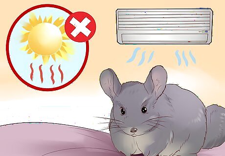Prepare to maintain the right temperature. Chinchillas cannot live in hot weather or high humidity without the risk of getting sick or even dying from heat exhaustion. It should not live in environments with over 40% humidity or temperatures above 78 °F (26 °C). Optimally, their temperature should be between 50 and 65 °F (10 and 18 °C). If you live somewhere where the summers get warmer, that might mean keeping the A/C on during warm days.