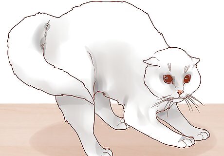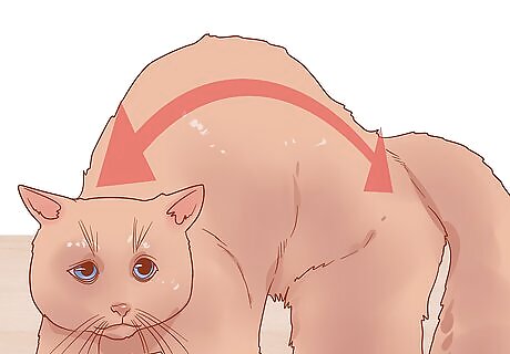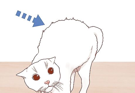 Watch for an arched back. An arched back is a sure sign your cat is feeling fearful and aggressive. The arch makes them appear bigger to whatever it is its facing in an attempt to scare it off. The arched back and bristling fur usually happen at the same time. If you're not sure what an arched back looks like, think of a depiction of a scary Halloween cat with an arched back.