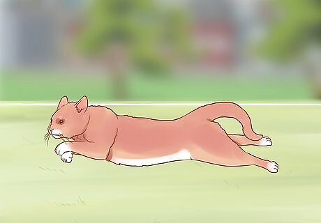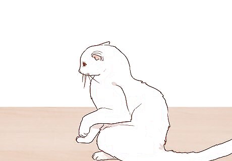 See if your cat is crouching low. If your cat is scared, it may take a defensive position with its body crouched low to the ground. The cat will seem tense and ready to move at any moment with its feet under it, not relaxed and laid out flat. In this position, it may lower its head, too. If standing, your cat's back end will be lower to the ground than the front. Also, their head will be lowered toward the ground. Your cat may also be laying on their belly or sitting.