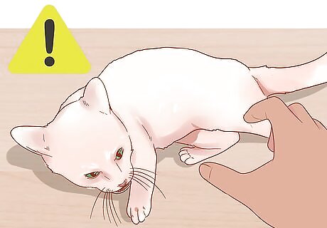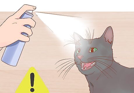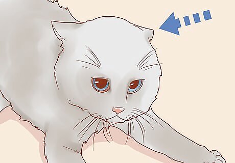 Be ready for swatting, biting, and scratching. When your cat's behavior turns aggressive, you could be hurt in the fray. Your cat may intentionally or unintentionally bite you or scratch you, as a way to show you it can defend itself against whatever is scaring it. It may bite or scratch at other animals and things, too, such as a dog or the vacuum cleaner.