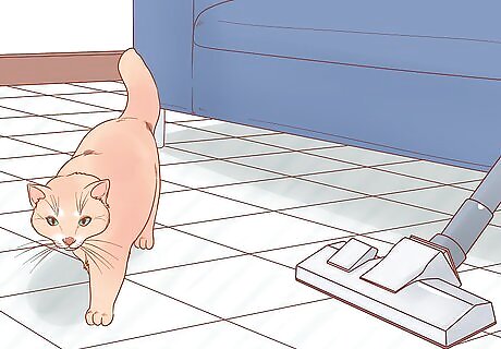Teach your cat to not fear other triggers. With other triggers, try using food to help your cat understand there's nothing to be afraid. For instance, if your cat is afraid of the vacuum cleaner, show your cat the vacuum from across the room and then put it away. If your cat doesn't react aggressively, give it a treat and praise it for good behavior. If your cat is aggressive, try repeating the process over time until your cat shows less aggression.