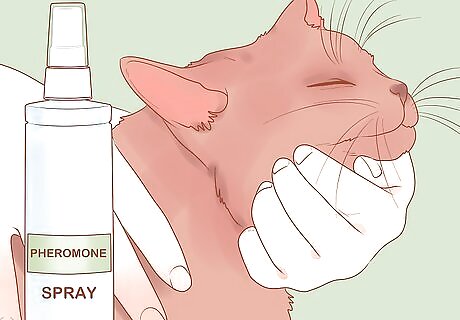 Try a pheromone spray or plug-in to help a cat that's always anxious. These products provide similar pheromones to natural ones your cat produces, and it may help soothe an anxiety-ridden cat. You simply spray the air or plug the product into the wall, and it will release pheromones for your cat. You can find these online or at most pet stores.