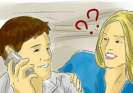 Notice if your partner’s behavior is different around the other person. Emotional affairs often give people an outlet to be different or act differently than they do around their partners. If you have contact with your partner and the person you suspect they are having an affair with, watch their interactions. Look for any differences from the way they act with you. For example, your partner may feel emotionally distant from you due to everyday stresses like bills, work, and home responsibilities. With this other person, they may be able to laugh, be relaxed, and be more playful. However, they might also because anxious or uncomfortable when they are around the person in your presence.
