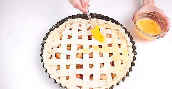 Mix one egg with 1 tbsp. (14.8 ml) of milk and a sprinkling of sugar (optional). Brush the surface of the pie with an egg wash. Bake it according to the recipe directions.