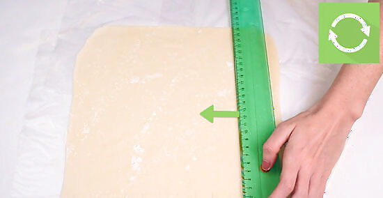 Wash a plastic ruler. You can use it to help you create straight ribbons. Set the ruler across the shorter side of your pie dough rectangle, at the center.